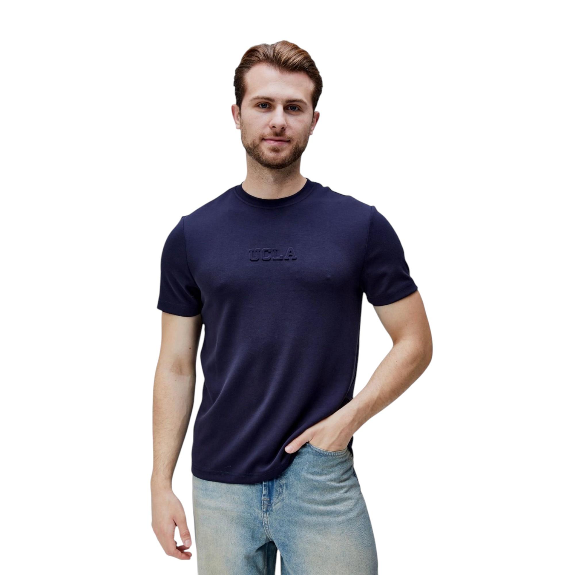 CANARY Bisiklet Yaka Gofre Baskılı Standard Fit Erkek Tshirt (UCLA.10402LacivertM)